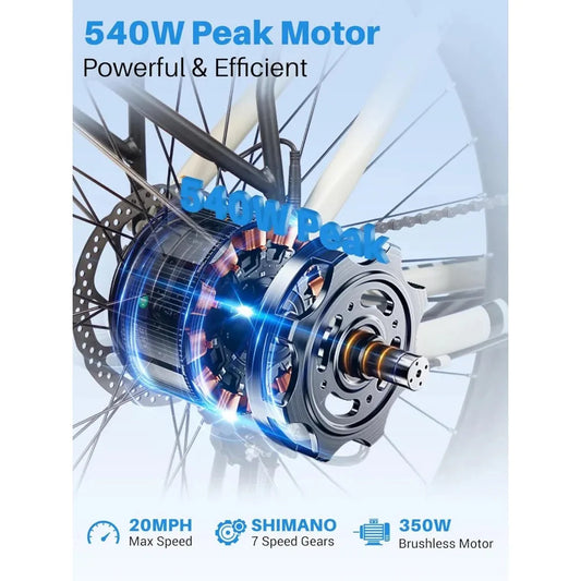 26" Electric Bike for Adults with Peak 500W Brushless Motor, 35Miles Removable Battery 20MPH Commuting Electric Mountain Bike